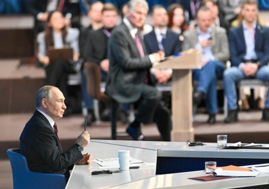 2025年12月19日,俄罗斯总统普京在俄首都莫斯科红场附近的商栈展览中心出席一年一度的“年度盘点”活动。新华社记者郝建伟摄