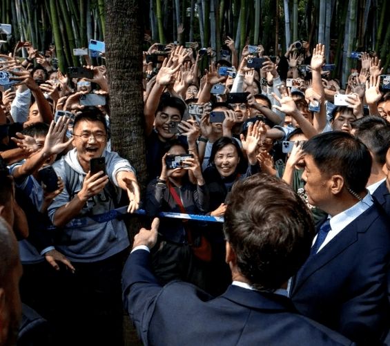马克龙访华被中国民众包围